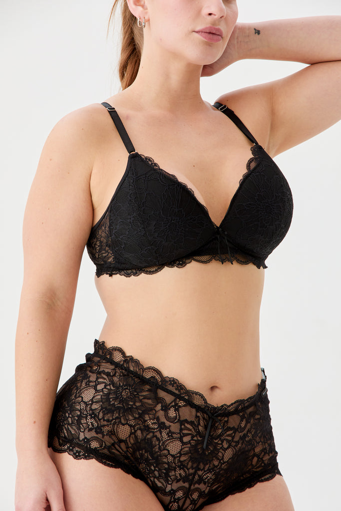 Soutien con taza soft triangular confeccionado con puntilla elastizada sin aro